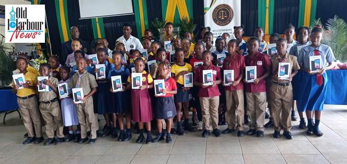 The devices were presented to children, who predominantly live and attend schools in rural St Catherine, at a ceremony held at The Ecclesia Family Ministry (Lions Club Civic Centre), Old Harbour, today.