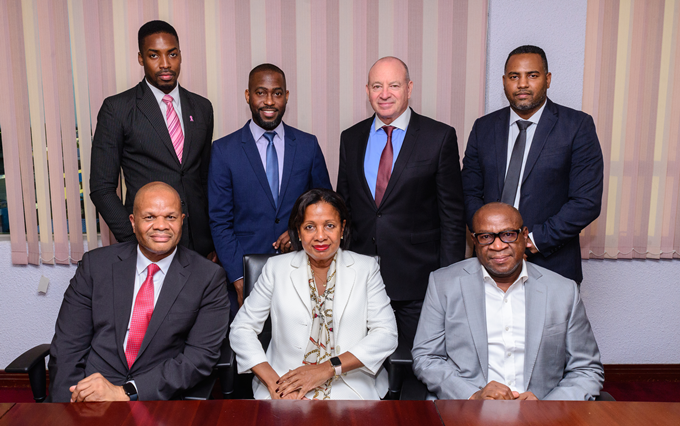 VC Fund Advisors Seated (L-R) Ugo Ikemba, CEO Mscale LLC; Audrey Richards, Private Capital Specialist, DBJ; and Chris Oshiafi, Group CEO, PanAfricn Capital Holdings Limited. Standing (L-R) Darnell Allen, Technical Officer, BIGEE, DBJ; Christopher Brown, Programme Manager, BIGEE; Gavin Ryan, Advisor to the DBJ; and Hugh Grant, General Manager, Project Management Office, DBJ