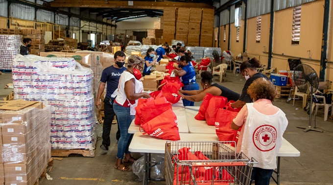 Staff at PanJam Investment Limited (PanJam), and its wholly owned subsidiary Jamaica Property Company, assisted the Jamaica Red Cross to prepare food packages for communities across the island.