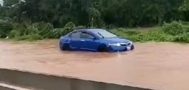 Moments before the NWA press release, Old Harbour News received an amateur video of a motorist making an unsuccessful attempt to go through the murky waters in the vicinity of Big Pond.