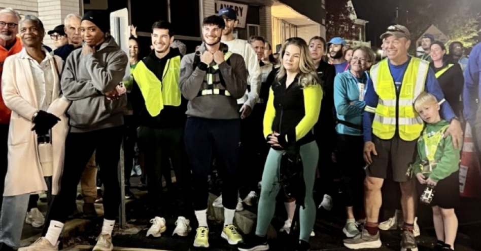 Runners head out from Fleet Feet for a fund run supporting Jamaican relief on Nov. 5, 2025. (Photo credit: Ronni Newton)
