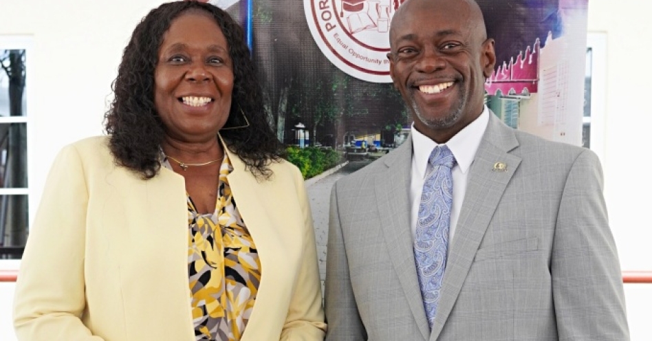 Dr Andrea Nickle-Higgins (left), senior vice principal, administration and operations, and Dr Austin Wright, newly appointed principal of Portmore Community College.