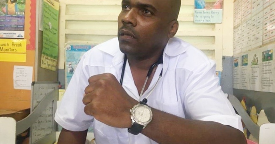 Dr Kurt Waul speaking to Old Harbour News at Marlie Mount Primary School on June 2, 2019. (OH News Photo)