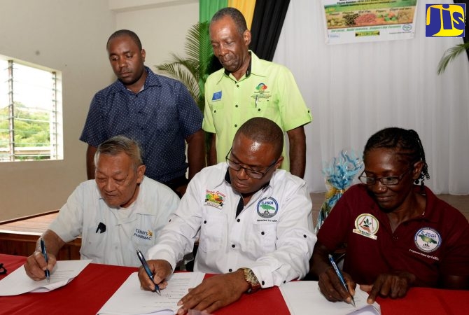 The signing took place at the launch of the Red Peas Industry Programme, in Spaldings, Clarendon, on November 1, by Minister without Portfolio in the Ministry of Industry, Commerce, Agriculture and Fisheries, Hon. J. C. Hutchinson.