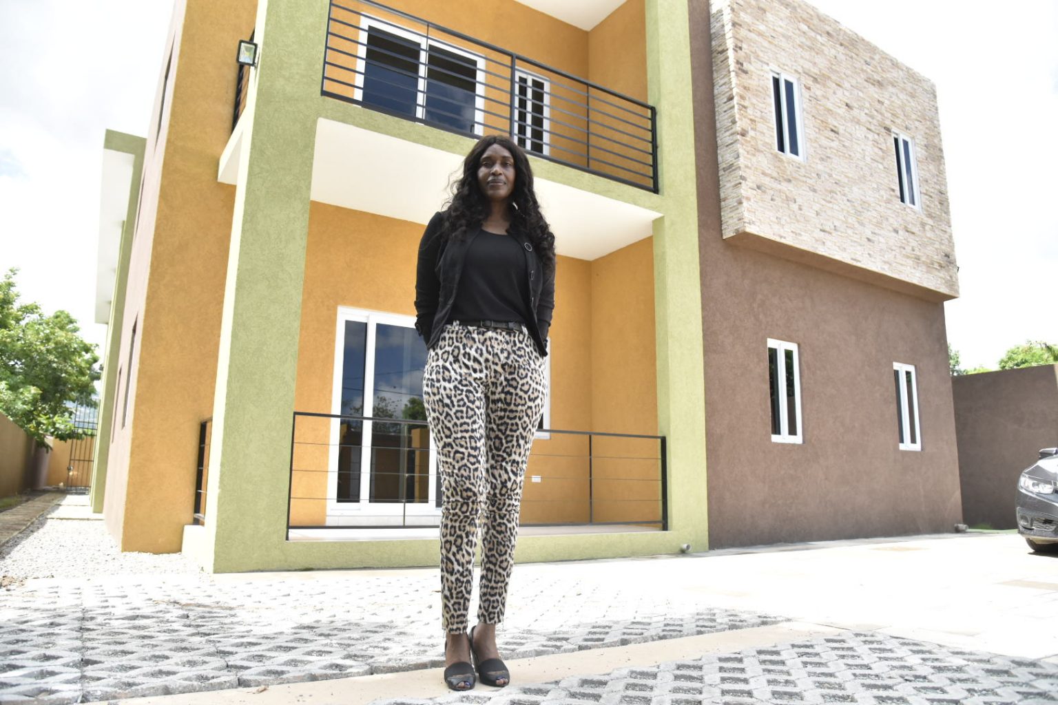 Developer, Denise Pitter, standing in front of a recently constructed apartment complex on Hughenden Avenue in St. Andrew, which was built by her company, TP Data Investments Limited. (JIS Photo)