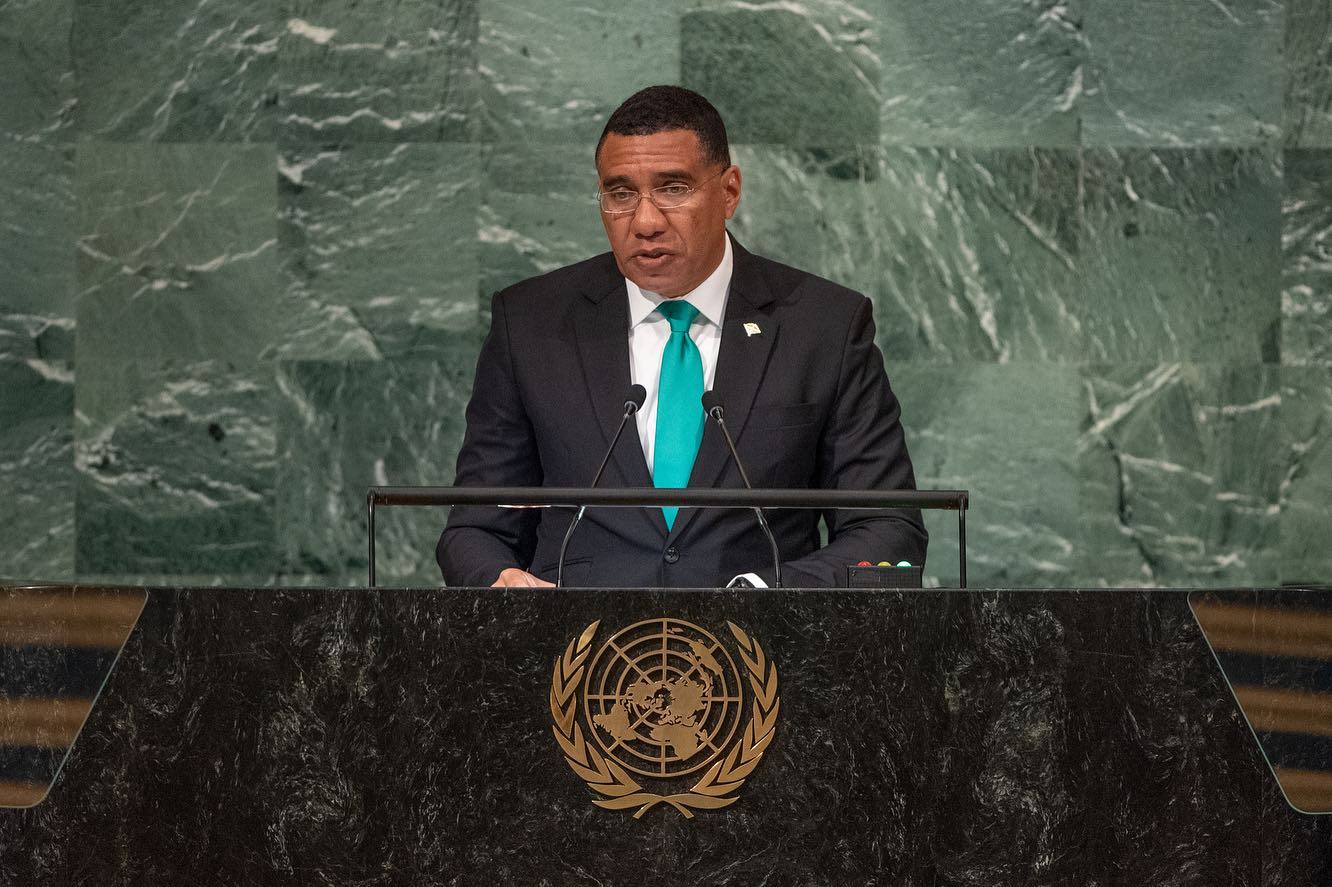 Prime Minister Andrew Holness speaking at the 77th United Nations General Assembly