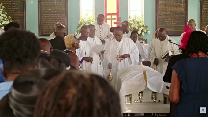 The priesthood performs the Reception of the Body final writs during the funeral service of the late Loraine Judith Spencer-Jarrett at Holy Trinity Anglican Church, Old Harbour on November 6, 2025.