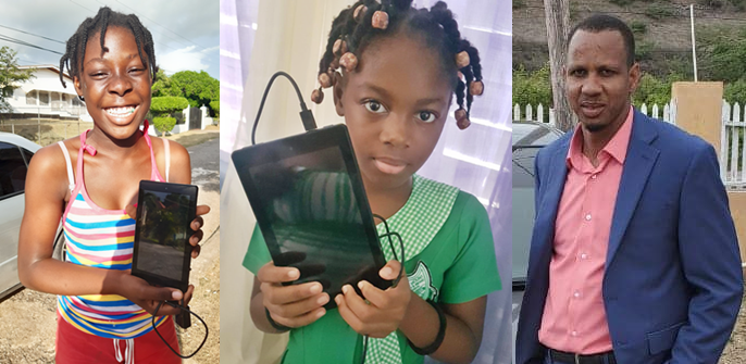 Latoya Brown, a final year student preparing for the Primary Exit Profile (PEP) exam and Cenicia Burgher, a top-performing grade five pupil, were both recently presented with tablets to aid their academic performance levels and virtual learning due to the ongoing coronavirus (COVID-19) pandemic.