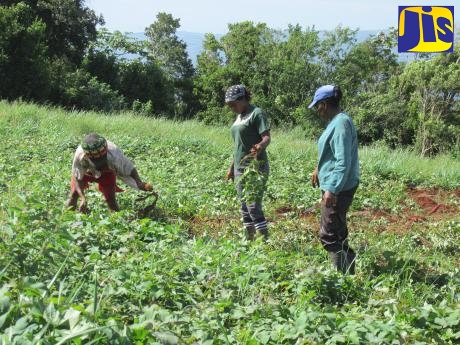 Female farmers in Grierfield, St. Ann, attend to their crops.