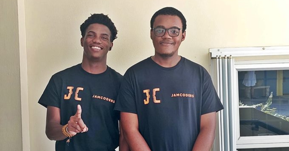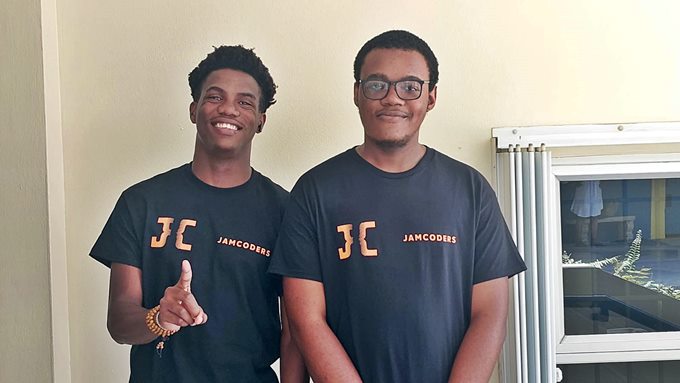 From Left: Junier Bailey of Old Harbour, St. Catherine and Joshua McMahon of Santa Cruz, St. Elizabeth, both Computer Science majors at the University of the West Indies, Mona, were a part of the first cohort of students at the JamCoders Summer Camp established in 2022. This year they transitioned to chaperones, assisting students from various institutions to adapt to the month-long camp held at the University of the West Indies.