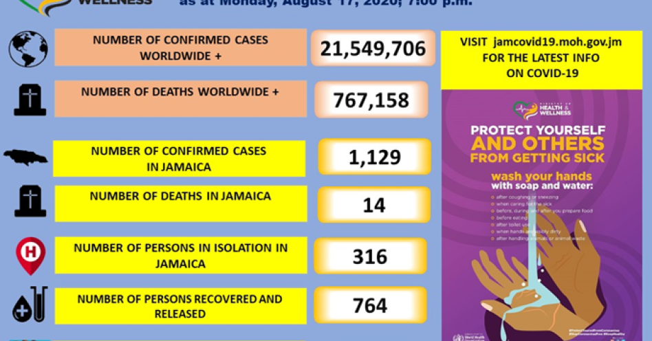 Latest Covid19 data on Jamaica (Source: MOHW)