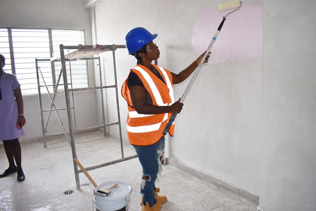 Pamputtae painting the Postnatal Ward Counselling Room at the Victoria Jubilee Hospital