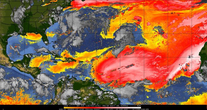 The arrival of the Saharan dust layer is not unusual and happens every year between May and October. The plumes are usually short-lived, lasting no more than a week. However, what is different this year is the thickness of the plume that is observed on the satellite imagery and as a result, we are expecting greater concentrations in the dust levels.