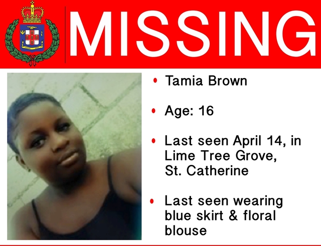 Relatives of Tamia Brown, who resides in the community of Lime Tree Grove in the Old Capital, have reported her missing.
