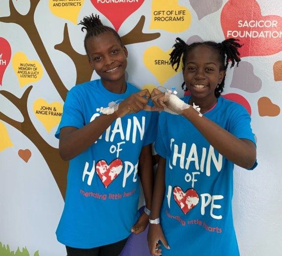 Abigail (left) from Tivoli Gardens, and Deanna from Duhaney Park, celebrate their successful cardiac catheterisation procedures, which were done in the recently commissioned biplane cardiac catheterisation lab at the Paediatric Cardiac facility, Bustamante Hospital for Children, during a recent Chain of Hope Medical Mission.