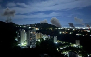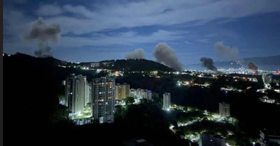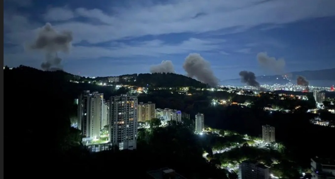 One of several images purported to be coming out of Venezuela shows plumes of smoke after the US Military strikes targets in Caracas.