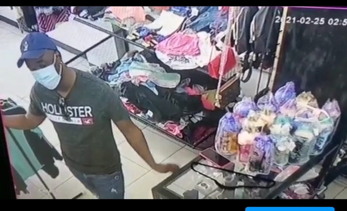 A screenshot of the culprit about to steal a phone inside the LS Dress For Less store on Darlington Drive.