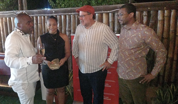 Dr Kurt Waul (left) in discussion with People’s National Party (PNP) leader Mark Golding (2nd right) along with his wife Simone Waul (2nd left) and Arnaldo Brown.