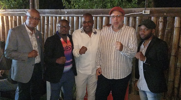 (L-R): Mayor Norman Scott, PNP VP; Obryan Leighton, PNP caretaker, Old Harbour Central; Dr Kurt Waul, councillor, Old Harbour South; Mark Golding, PNP President; Adrian Samuda, PNP caretaker, Old Harbour North.