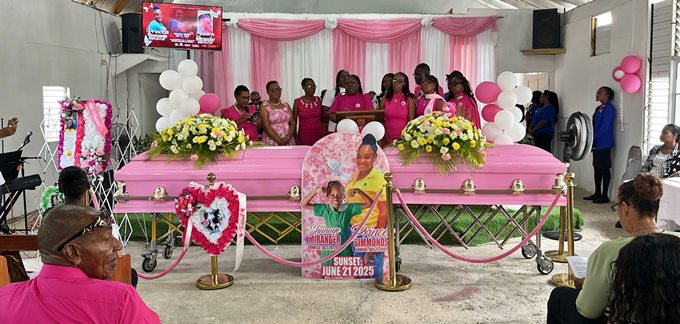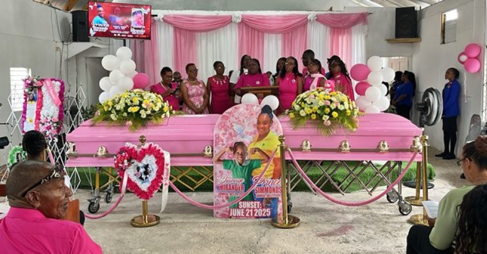 Upon seeing the two pink caskets at the front of the church, friends and family members could not hold back tears. It was a full house at the Bannister Seventh Day Adventist Church in northern Old Harbour, St Catherine as hundreds came out to pay their respects, most wearing various shades of pink as requested by the family. Depicting happier times, a huge coroplast board cutout of a smiling 44-year-old Simmonds and nine-year-old Shanaye was prominently placed in front of the caskets.