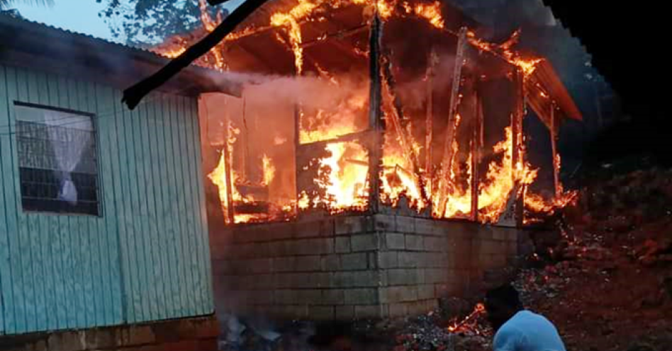 The two-bedroom board dwelling at Red Ground district on fire (Contributed Photo)