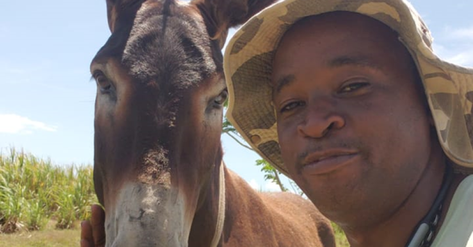 Damion Whyte plays with a donkey while out in the field. (Contributed Photo)