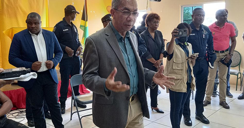 Security Minister Dr Horace Chang speaking to victims and family members of the Spring Village mass shooting. (OH News Photo)
