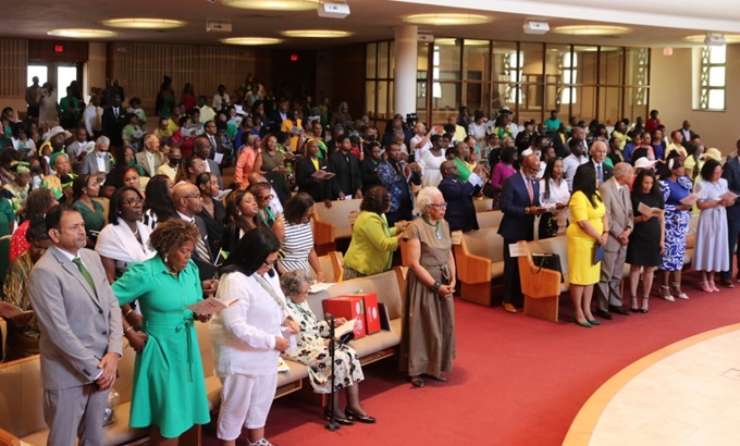 Jamaicans worshipping at the Emancipation and Independence church service at the Sligo Seventh-Day Adventist Church in Takoma Park, Maryland. (Photo: Derrick Scott)