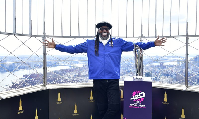 West Indies legend Chris Gayle lights up the iconic Empire State Building in New York during the ICC Men’s T20 World Cup 2024 Trophy Tour recently. Gayle, 44, holds the enviable record of being the first batter to score a T20 World Cup century, a sizzling 117 versus hosts South Africa in 2007.