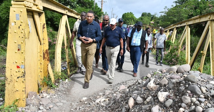 Prime Minister Andrew Holness and other offiials on a tour of the Spring Village bridge last year.